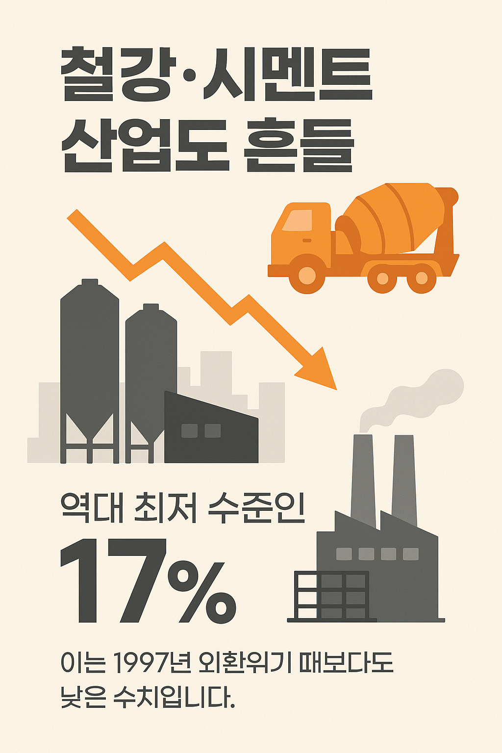시멘트 업계 역시 전기요금 상승과 건설 경기 침체라는 이중고를 겪고 있습니다. 전체 35개 시멘트 생산 라인 중 10개가 멈췄고, 레미콘 가동률은 17%까지 하락했습니다. 이는 1997년 외환위기 때보다도 낮은 수치입니다.